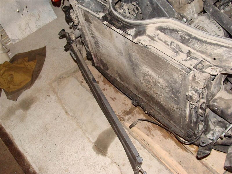 Теперь снимаем радиаторы (заметил, что гниют, надо менять). Морду нужно перевести в сервисное положение, снять радиатор кондиционера, продолжаем разбирать дальше, и для того, чтоб снять кожух ГРМ понадобится ослабить натяжной ролик.