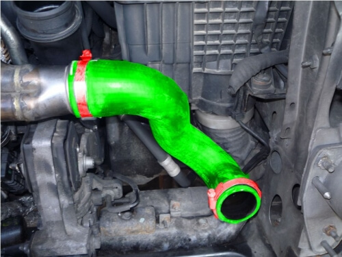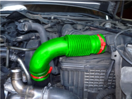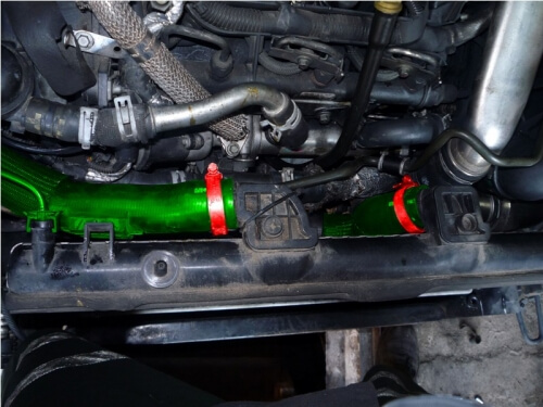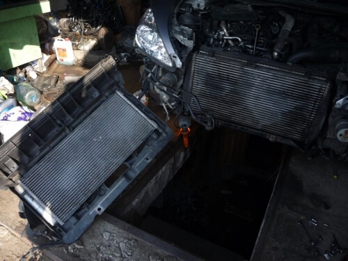 Сразу отсоединяем патрубки, после чего можно вытаскивать радиатор интеркулера.