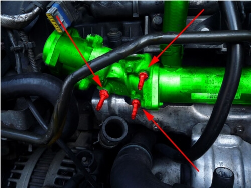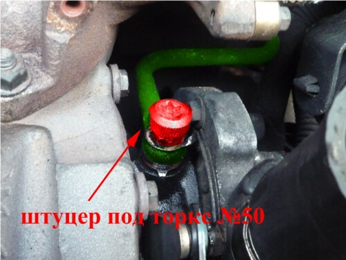 А также нужно снять металлическую трубку системы ЕГР.