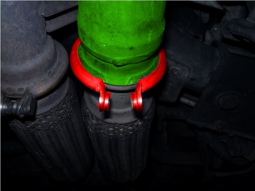 После пользуясь головкой № 16, нужно открутить болт хомута, он расположен на месте соединения приемной гофры и выпускной трубы катализатора.