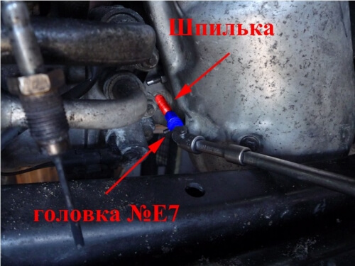 Затем откручиваем болт на 13 под патрубком и болтик на 10.