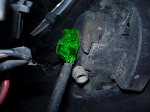 Теперь нужно разъединить магистраль омывателя фар.