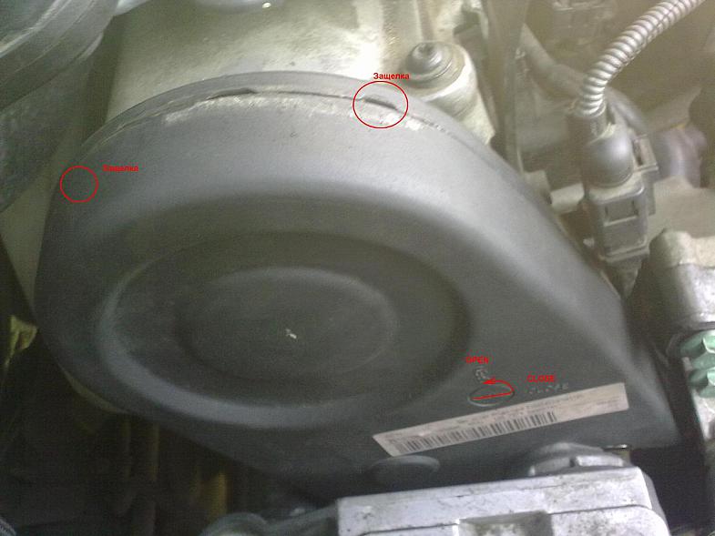 Теперь нужно выставить метки, ВМТ на распредвалах и коленвалах. А также открутить среднюю часть защиты дабы получить доступ к помпе.