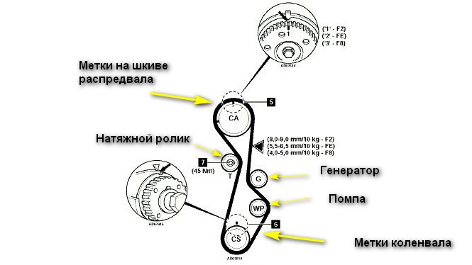 Схема системы ГРМ на Мазда 626 2,2 с мотором F2
