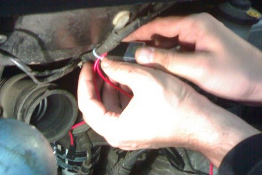 Так будет проще его протянуть, но потом придется его спаять и заизолировать. Но резать не обязательно, если у Вас получится протянуть целый. Конец проводка, на котором есть фишка, должен быть под капотом, фишку нужно надеть на вторую клемму.
