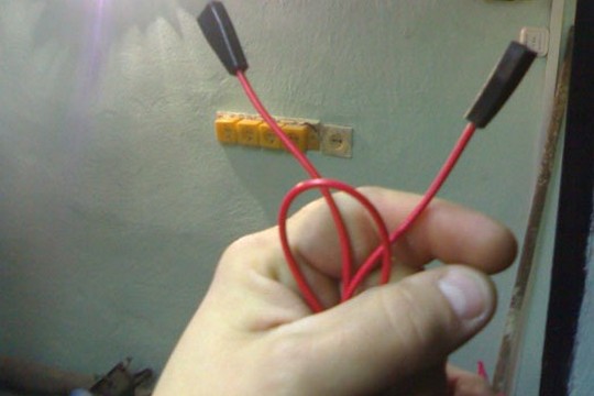 Провод можно разрезать, если фишки на концах мешают его продеть.