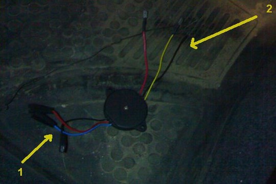 Далее приступаем к установке блока подогрева, он устанавливается под панель в области предохранителей. Пучок проводов 1 пойдет на кнопку включения, а 2ой — на коммутацию с питанием.