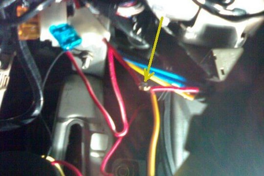 Для этого провод сигналки освободить от изоляции и примотать к нему желтый провод.