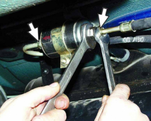 - Устанавливаем новый фильтр в обратном порядке, хорошо затягивая гайку на топливной магистрали.