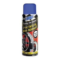 Пенный очиститель ABRO позиционируется производителем как высококачественное пенное средство для очистки автомобильных шин. Может использоваться как для легковой, так и для грузовой техники, в частности, их нерабочих поверхностей (то есть, боковых). Средство очень удобно в работе, поскольку после использования его не нужно смывать водой. Кроме непосредственно очистки поверхности шины от грязи АБРО отлично восстанавливает насыщенный черный цвет шин. Производитель указывает, что после нанесения средство эффективно защищает резиновую поверхность от пыли, грязи и выцветания в течение четырех недель. Кроме этого, предотвращает постепенное растрескивание шин, а также их выцветание под действием ультрафиолета (то есть, под ярким палящим солнцем). Одной упаковки объемом 595 мл хватает, чтобы 12 раз (на год) обработать четыре колеса размером 195×65R15.