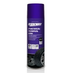 Средство Runway позиционируется производителем как очиститель-полироль ультра-блеск, что есть «2 в 1». Состав предназначен для обработки любых автомобильных покрышек, в том числе грузовых и специальных. Отмечается, что после обработки на резиновой поверхности образуется очень красивый блестящий слой, отличающий резину на фоне других аналогичных материалов. Отлично справляется с защитой резины от воздействия грязи и пыли, а также ультрафиолета и различных химических соединений, имеющимся на дорожном покрытии. Кроме этого, состав предотвращает старение резины, появление на ее поверхности микротрещин, царапин, задиров и прочего.