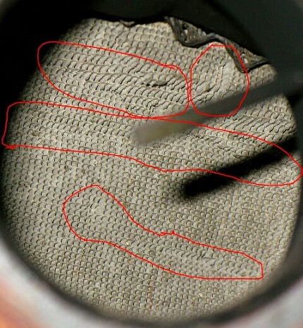 Соты катализатора удалять целиком я не стал, мною было пробито два отверстия, излишки были удалены.