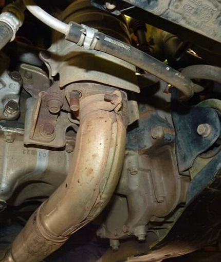 Первым нужно снять выпускной коллектор, предварительный катализатор интегрирован в нём: