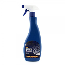 Под торговой маркой Mannol производятся два аналогичных очистителя — Mannol Motor Cleaner и Mannol Motor Kaltreiniger. Первый в упаковке с ручным триггером распылителем, а второй в аэрозольном баллончике. Эффективность очистителя средняя, однако он вполне подойдет для использования в гаражных условиях, и для обработки двигателя перед продажей машины.