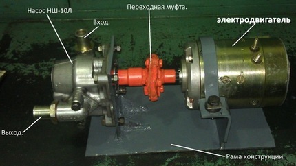 - Мотор с насосом и «обвязкой» монтируется на раму.