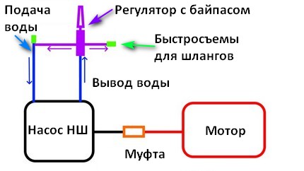 - Муфта или сцепление для соединения мотора и помпы;