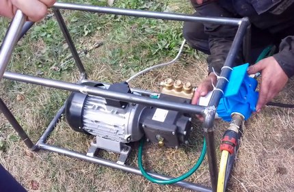 Сборка конструкции производится так же, как при изготовлении электрической или бензиновой мойки в предыдущих двух разделах.