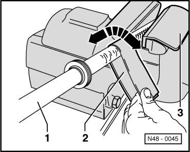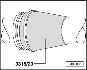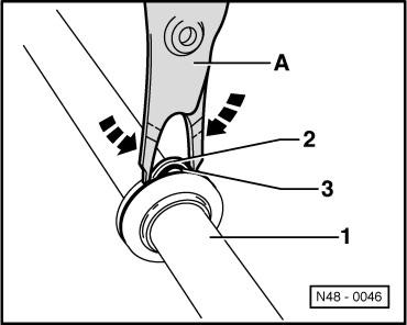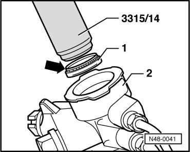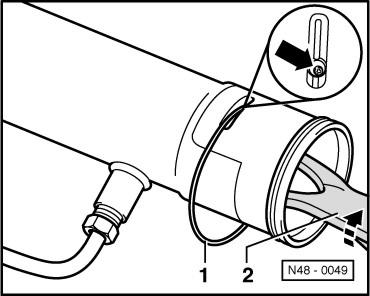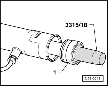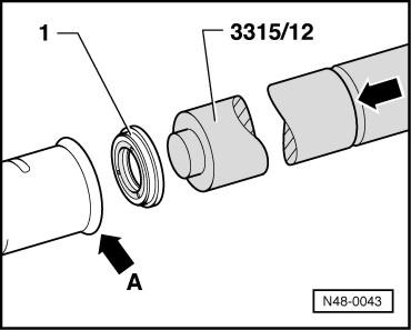 - Уплотнительное кольцо -1- настолько запрессовать в трубку цилиндра, чтобы канавка -стрелка- на инструменте была накрыта кромкой -стрелка A- корпуса.