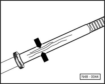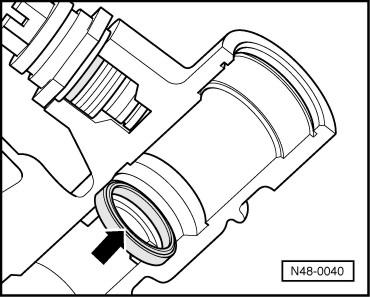 Если снятая рейка будет использована, проверить уплотнительное кольцо на наличие бороздок (визуальный осмотр). При заметных или существенных бороздах заменить это кольцо и расположенное за ним уплотнительное кольцо круглого сечения.