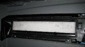 Корпус воздушного фильтра находится под капотом в правой задней части. Следует откинуть пару металлических застежек, чтобы можно было вытащить кассету с фильтром. Далее надо извлечь фильтр и осмотреть с обеих сторон.